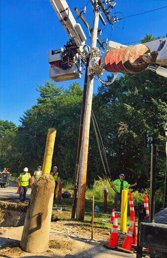 Installation of modern insulated aerial bundle cables (ABC) for improved safety, reliability and reduced vegetation management requirements.